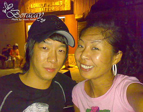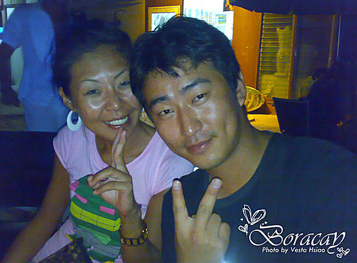 後來,也沒有刻意尋找,但沒再看到他了。一直到情人節的晚上,我和Eony孤單的在Cofe DelSol 喝咖啡,我看見韓國導遊Michelle,和Michelle聊天當中Eony一直打我,哇! 我的Dream lover出現了! 當Eony跟Michelle描述之後,我的夢中情人”여욱환”竟然找我主動拍照,超開心的! 原來他們和Michelle正要去潛水店喝酒,後來也約我們一起去,我們一起到Viking Dive喝啤酒。這是他們最後一夜在Boracay,隔天他們要回馬尼拉停留七天之後回韓國,整個結束電影的拍攝。